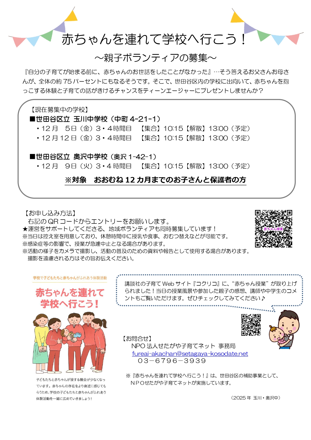 …》赤ちゃん授業チラシ(玉川中、奥沢中) <<募集中>>