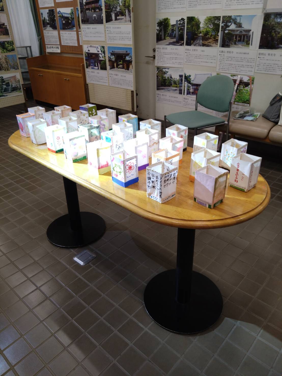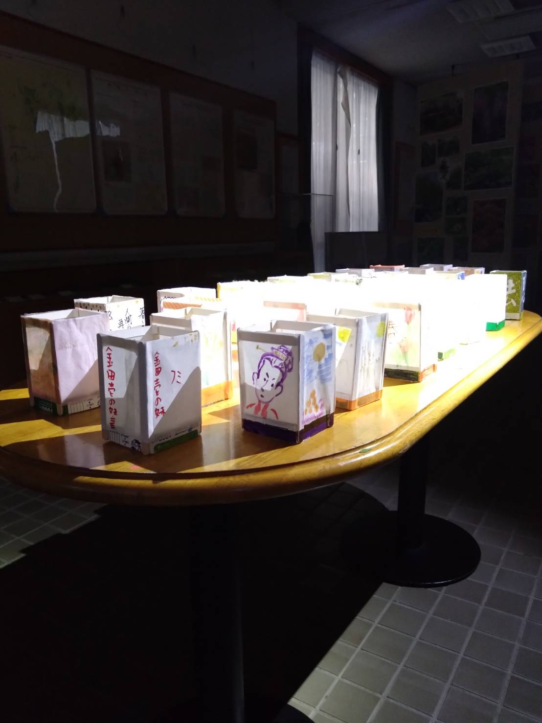今まで準備してくれた方を中心に、たくさんの方が絵の具やクレヨン、筆ペン、折り紙などで、とってもステキな灯篭を作りました!