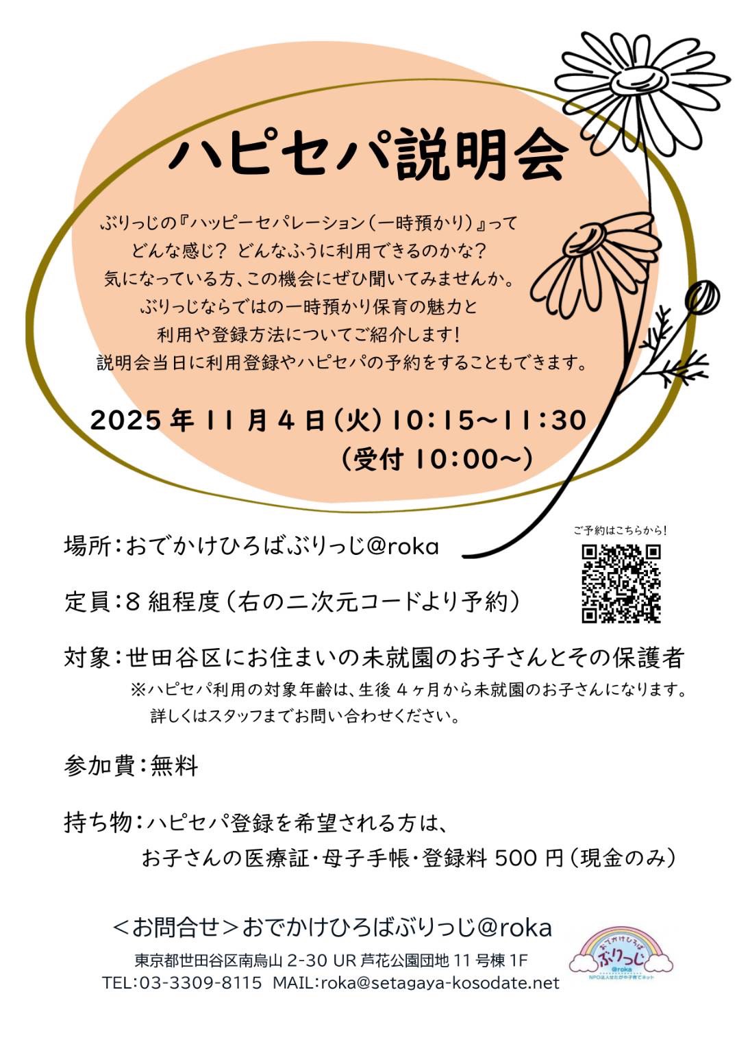 一時預かり保育を利用したことのない方、ぶりっじのハピセパってどんな感じ?どうやって利用するの?と思っていらっしゃる方、この機会にぜひ聞いてみませんか。