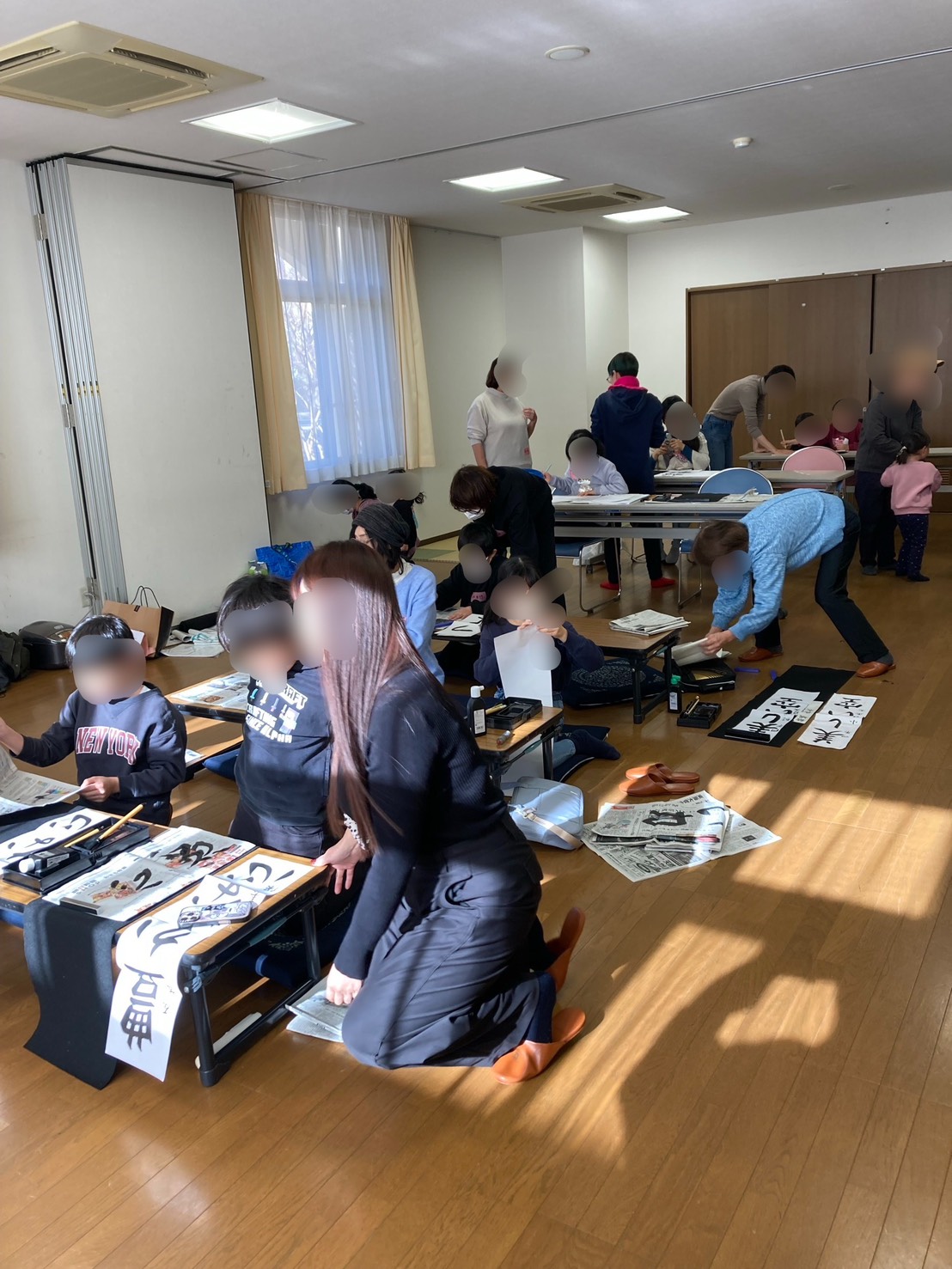 今日は赤ちゃん連れのママから小学生、地域の大人の方たちも一緒に『新年「書き初め」大会』を楽しみました!
