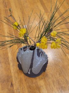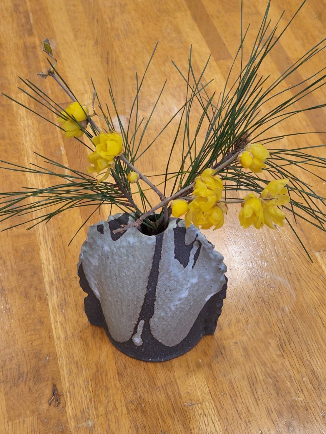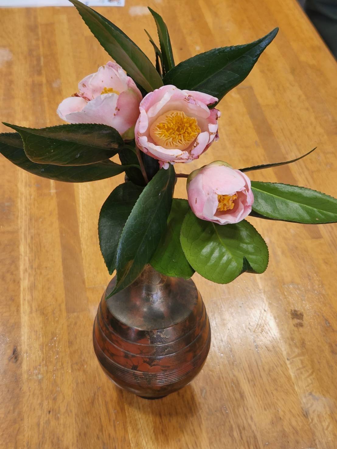 お庭に咲いたから〜♪と、お花をいただきました。ロウバイとツバキです。いい香りだねぇ!いい色だねぇ!皆さん、いい笑顔でおしゃべりに花を咲かせていました♪