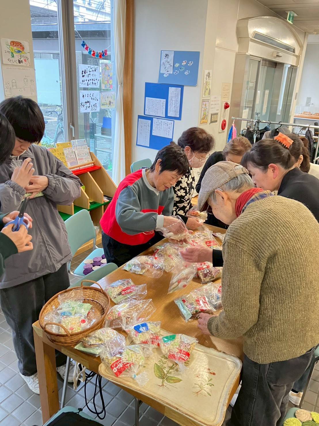 手際よく、お菓子を詰めて「たくさん来てくれるといいねぇ!」と、皆さん笑顔でした♪