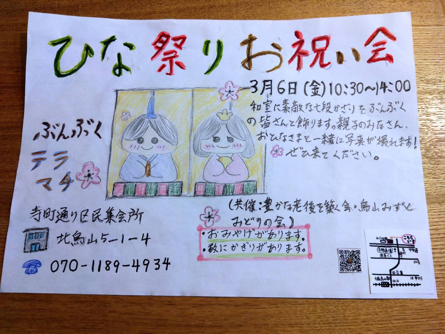 3/6(金)の「ひな祭りお祝い会」に来てくれる親子の皆さんに、ぶんぶくの皆さんでお土産のお菓子を準備しました。