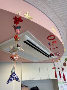 地域の方達から手作りの折り紙のお雛様やつるし雛をいただきました♪見に来てね!