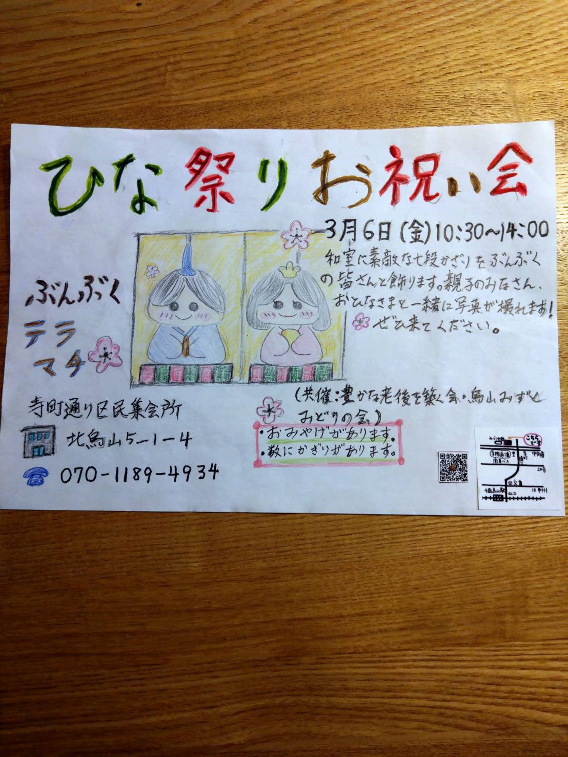 ぶんぶくバンドの演奏に合わせて11:00〜と、13:00〜「うれしいひなまつり♪」の歌も歌います。