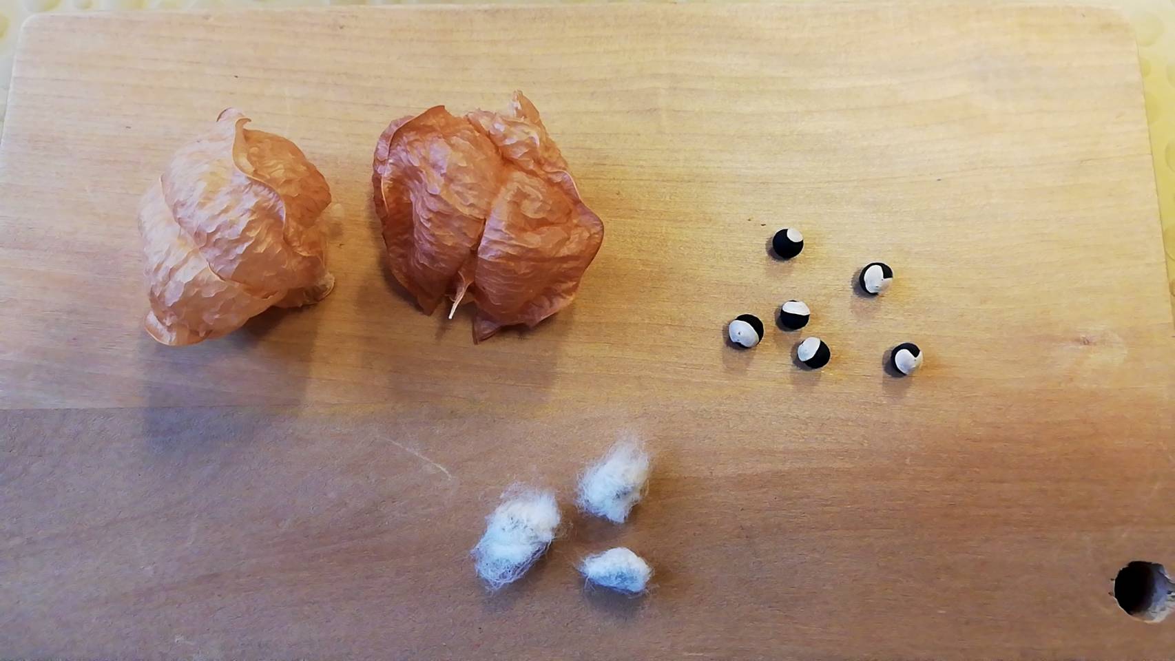 分散来室で、お母さんたちにフウセンカズラと綿の種を採ってもらいました。