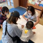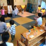 午前中はおはなし会できゅうりやトマトの実物を使ってのテーブルシアターに子ども達も大喜び!親子でおふねを漕いだりからだを使って楽しみました。