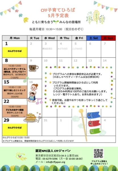 2020年に世田谷区の烏山地区に引っ越してきたのを機に、地域のみなさん・親子と共に育ち合う場でありたいと、週1回事務所を開放して子育てひろばやプログラムを開催しています。