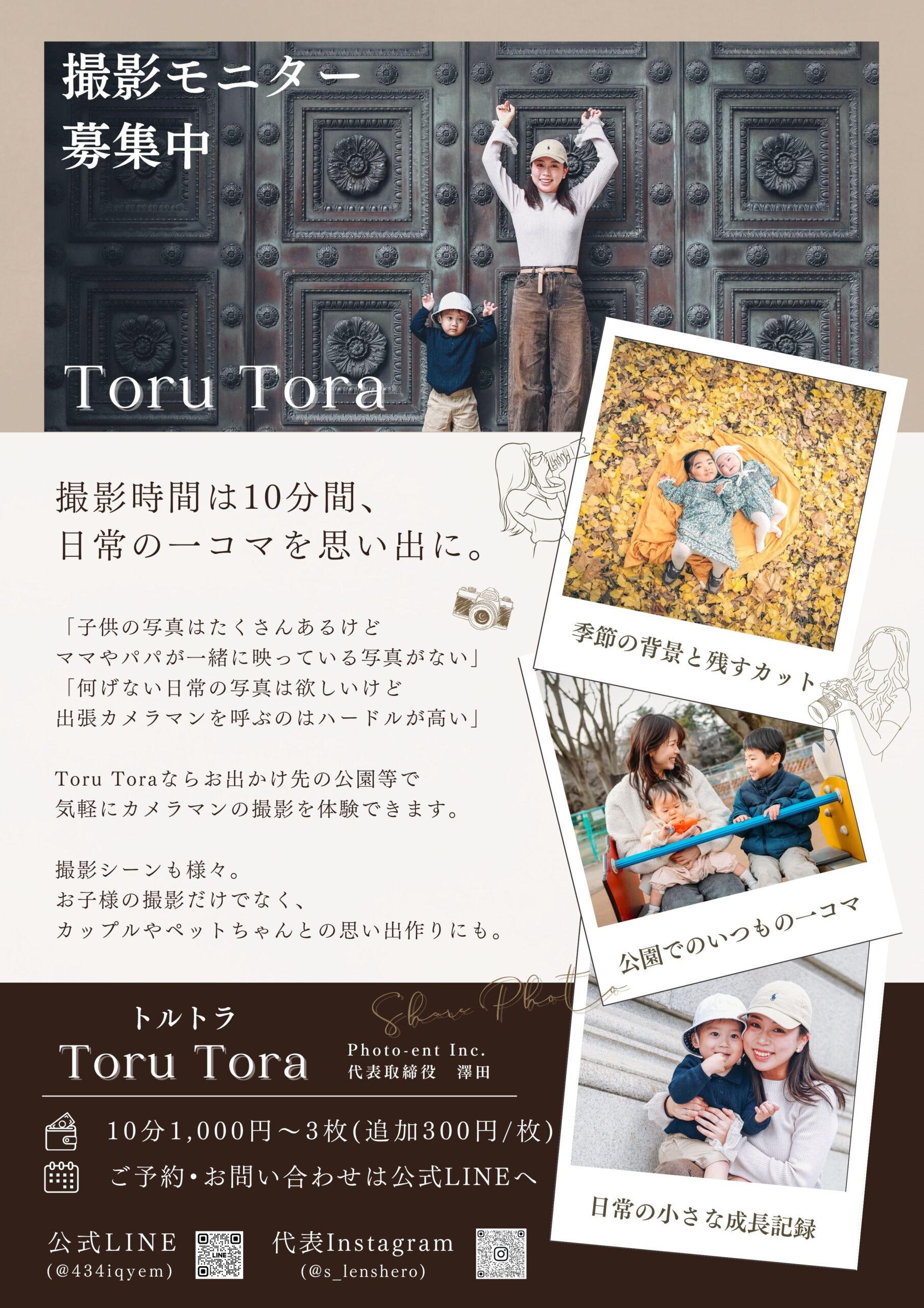世田谷区を中心にご家族さまの記念撮影を行っているToruToraです。この度、サービス立ち上げに伴い、モニター様を募集しております📷