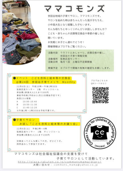 ⚫️イベント こども衣料と絵本等の交換会@第24回 世田谷子育てメッセ Monthlyと ⚫️ 子育てサロン お試し「こども衣料と絵本等のお譲り会」