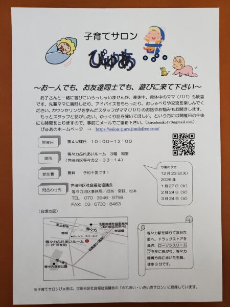 お子さんと一緒に自由に過ごしていただいています。お子さんを遊ばせながらママ、パパ達の情報交換やスタッフとの世間話を楽しんでもらっています。