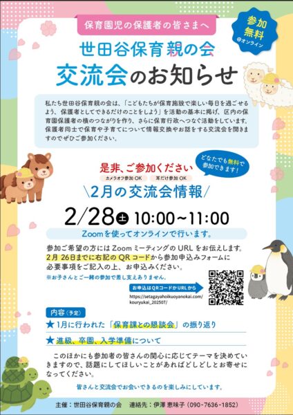世田谷保育親の会 2026年2月交流会のお知らせ
