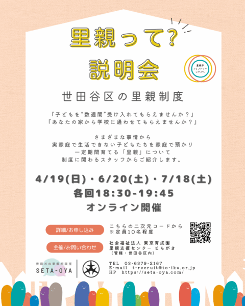 4月19日(日)|「里親って?説明会」オンライン開催のお知らせ